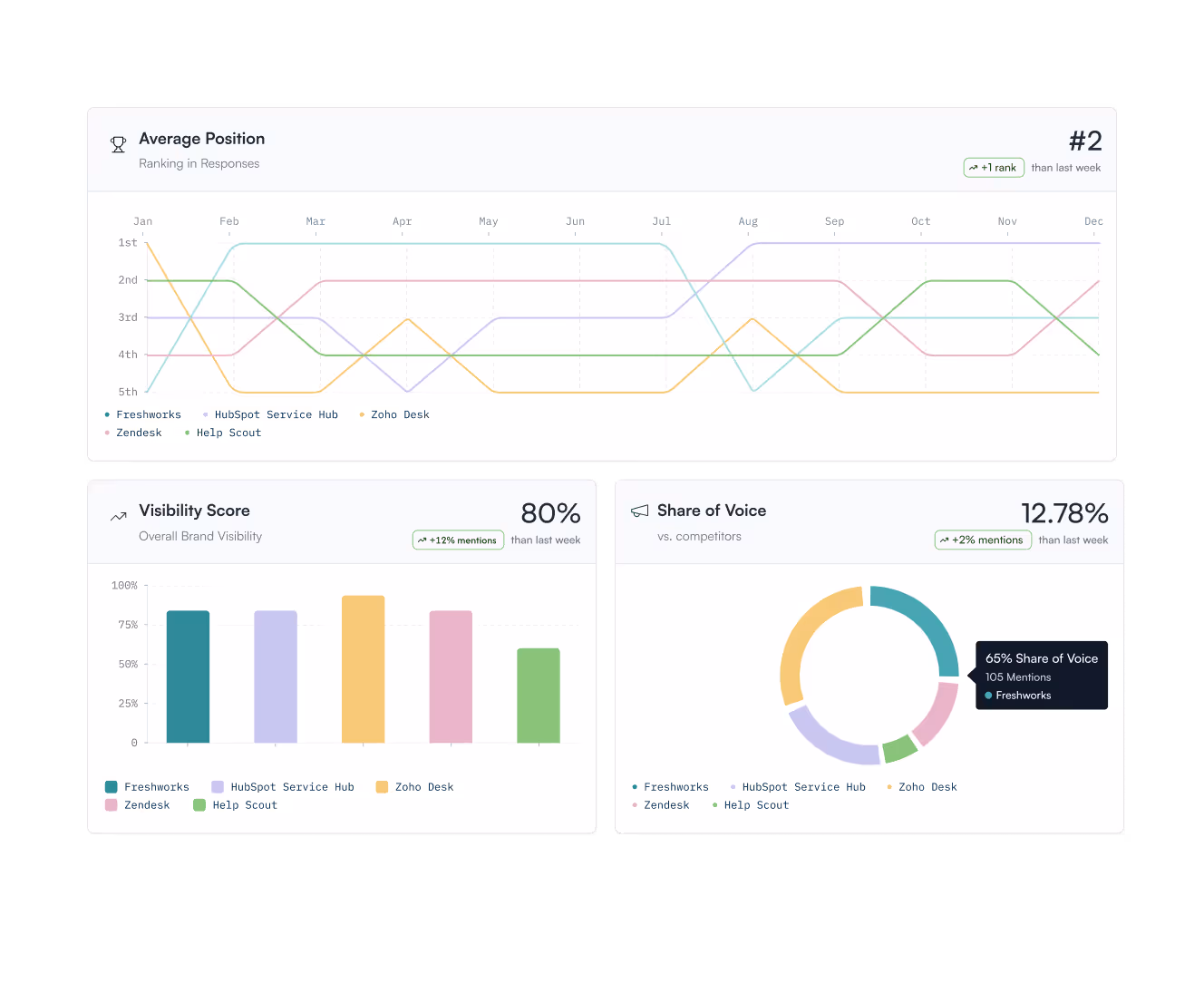 Measure your visibility against the competitive landscape over time.
